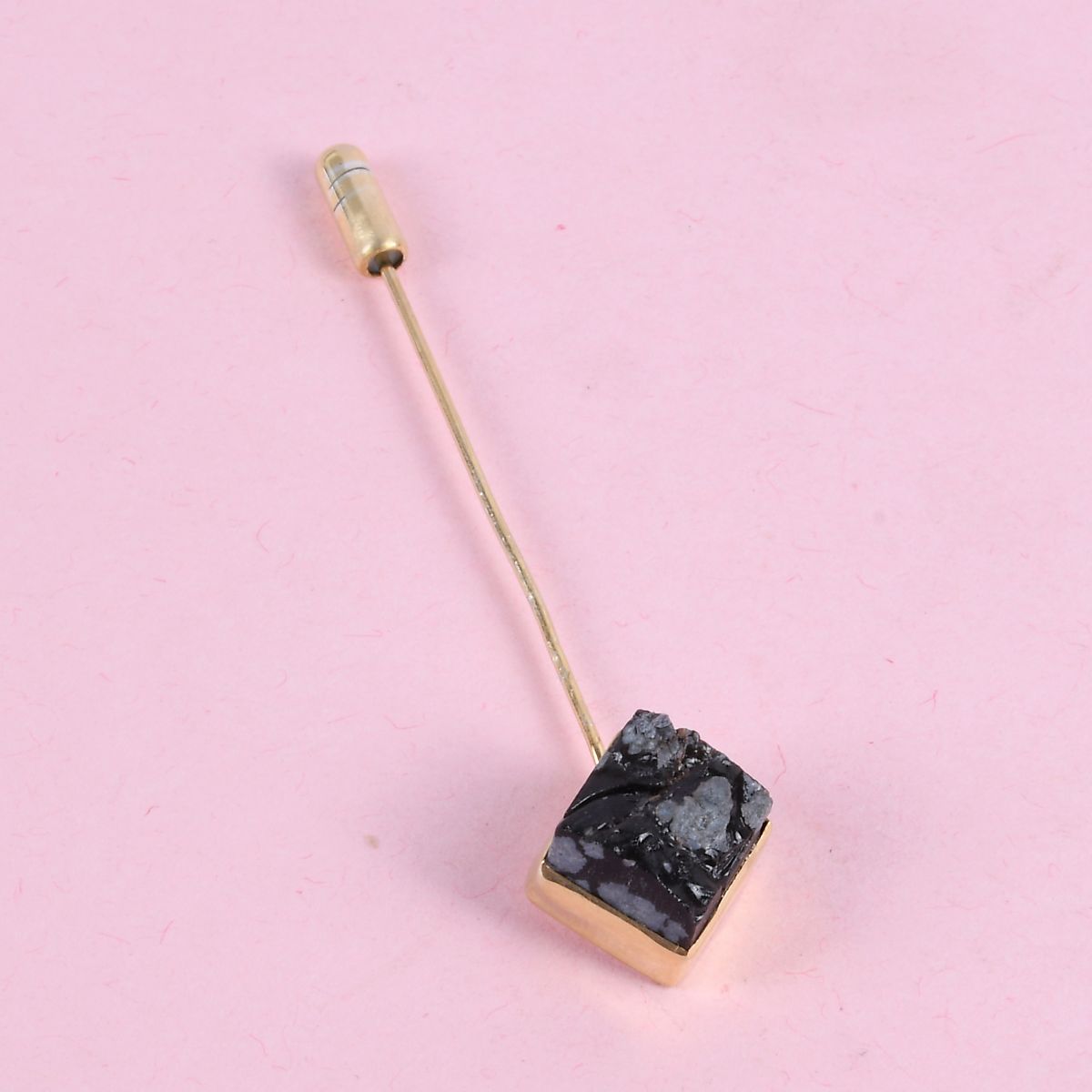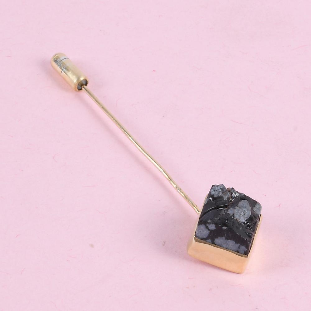Gold Plated Lapel Pin, Obsidian Lapel Pin, Men's Lapel Pin, Gemstone Lapel Pin, Natural Stone Lapel Pin, Jacket Lapel Pin