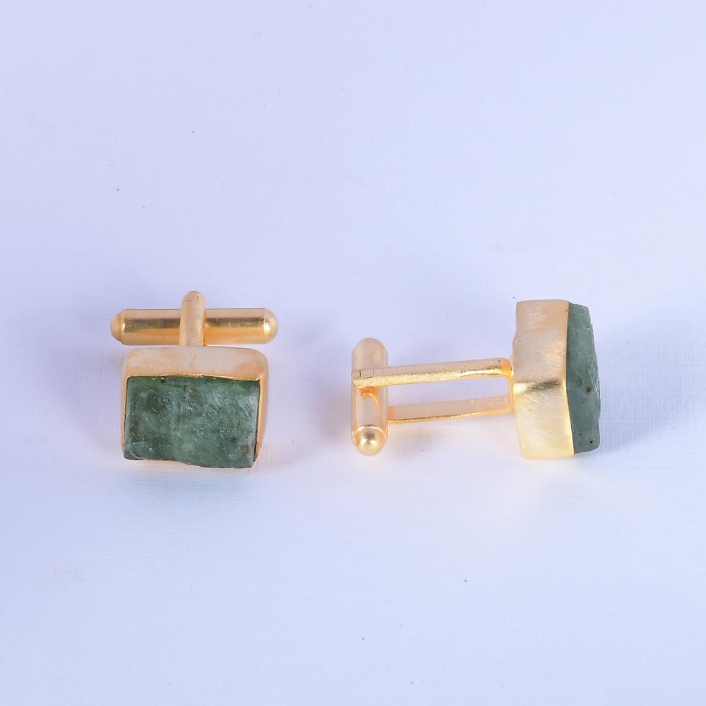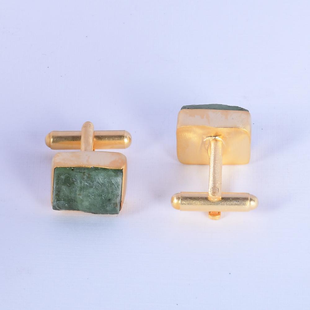 Exquisite Handmade Cufflinks, Made From Natural Green Kyanite And Gold-Plated Brass. High-Quality Raw Gemstone Is Accentuated By The Metal Detailing. Affordable And Everlasting Cuff Links For The Groom Are A Keepsake. Explore Unique Men's Accessories