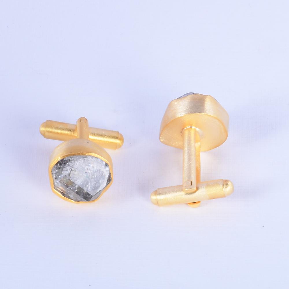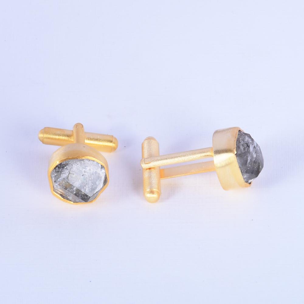 Distinctive 18K Gold-Plated Herkimer Diamond Cufflinks Are Completely Handmade In Jaipur, India. Bezel-Set Cufflink Highlight The Raw Premium-Grade Gemstone Beautifully. This Pair Of Stunning Gemstone Cufflinks Make A Wonderful Gift For The Special M