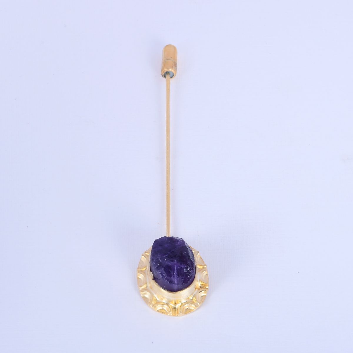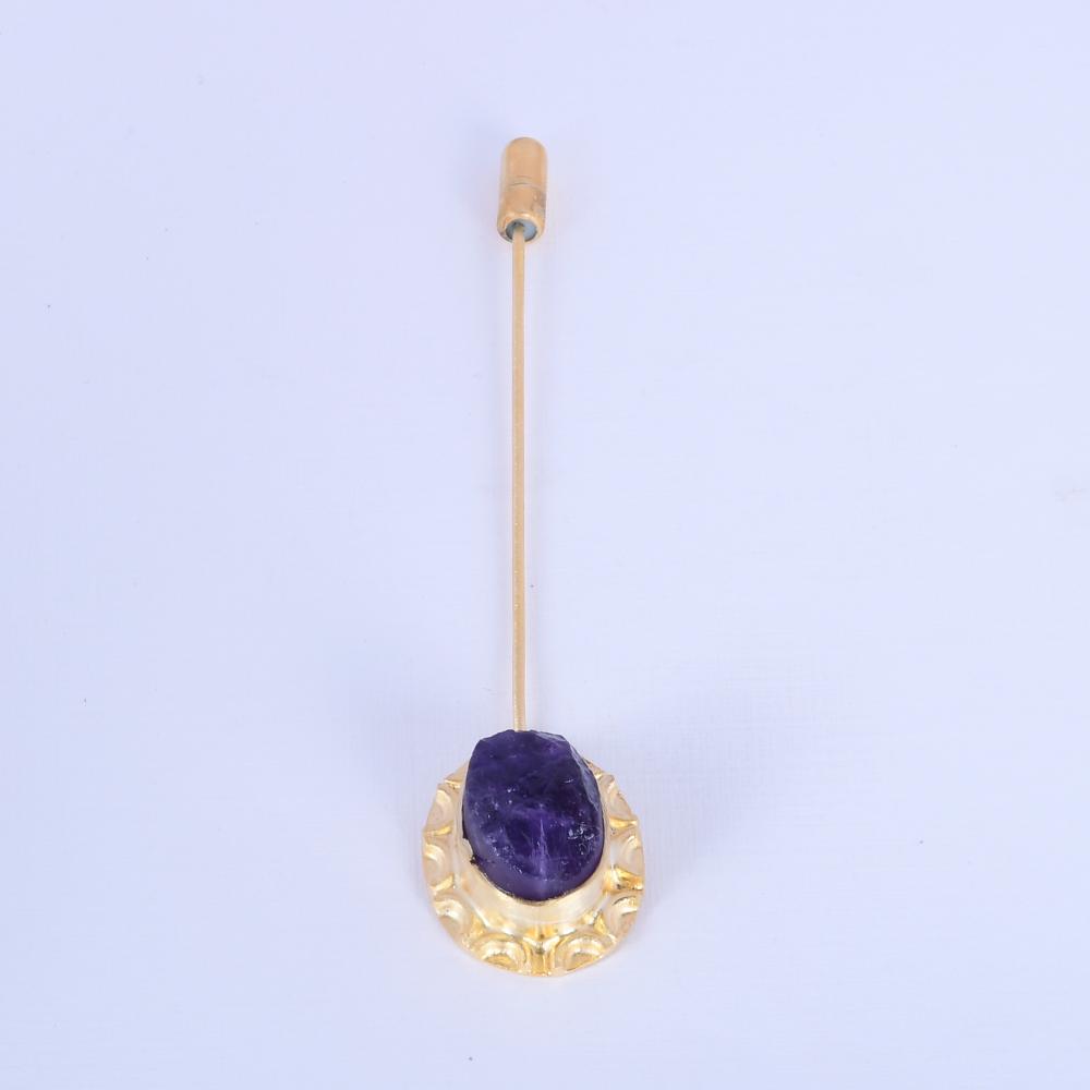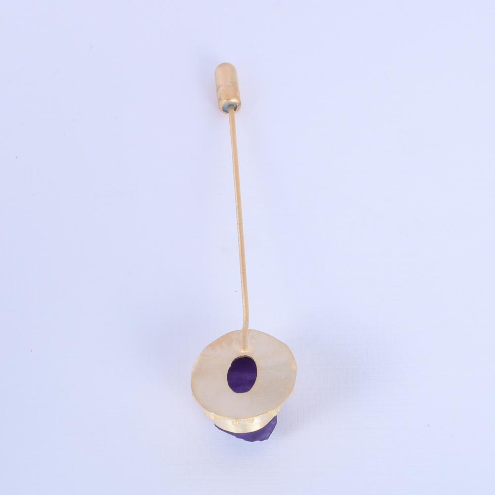 Amethyst Lapel Pin, Gold Plated Lapel Pin, Natural Stone Men's Jewelry, Stylish Jewellery For Men, Anniversary Gift For Dad