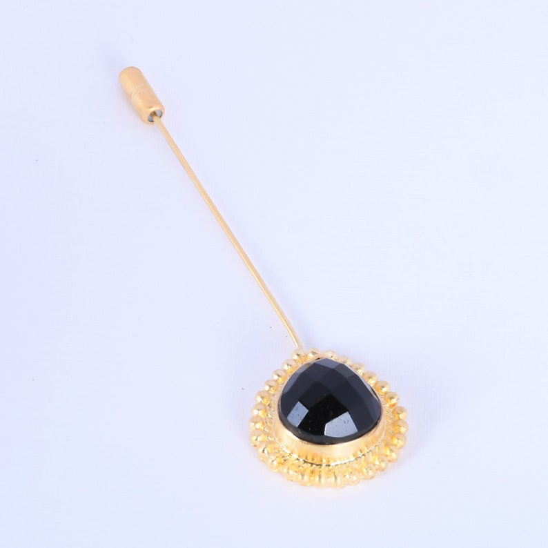 Black Onyx Lapel Pin, Faceted Lapel Pin, Gold Plated Bezel Lapel Pin, Wedding Lapel Pin, Minimalist Lapel Pin, Anniversary Gift For Men