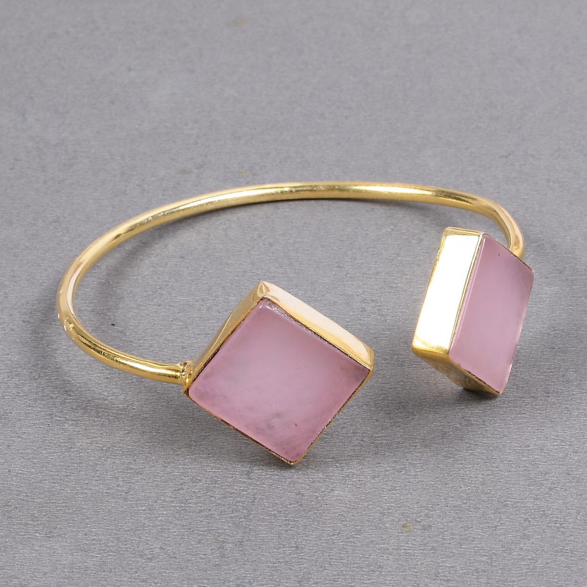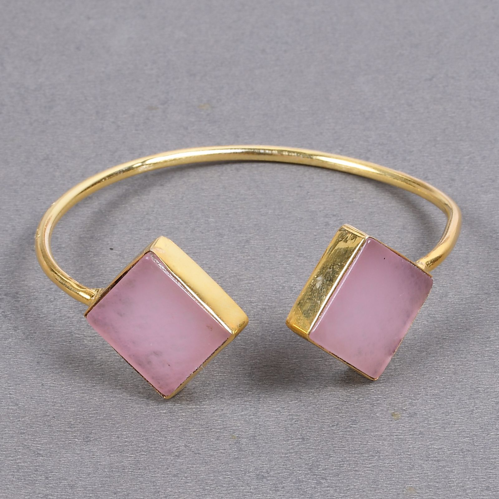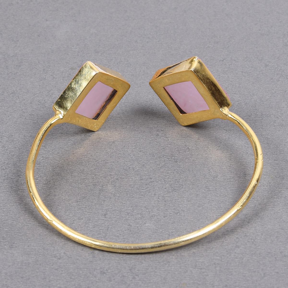 18K Yellow Gold Plated Bracelet, Pink Monalisa Bangle, Designer Bangle, Beautiful Bangle